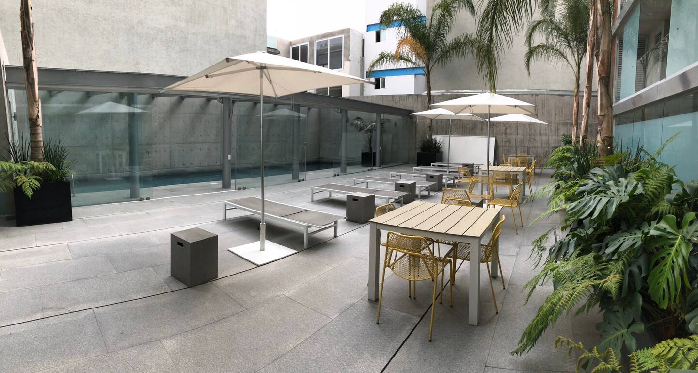 Este departamento está dentro de un condominio con seguridad 24 horas, en uno de los más exclusivos y seguros barrios de la Ciudad de México: Polanco. El departamento está en el piso 6 y tiene una gran vista de la ciudad. A unas calles encontrarás exclusivos centros comerciales, como Plaza Antara, Plaza Carso, Palacio de Hierro de Polanco y restaurantes, museos y una de las avenidas más famosas de México: Presidente Masaryk. A unos pasos también encontrarás el Hospital Español.